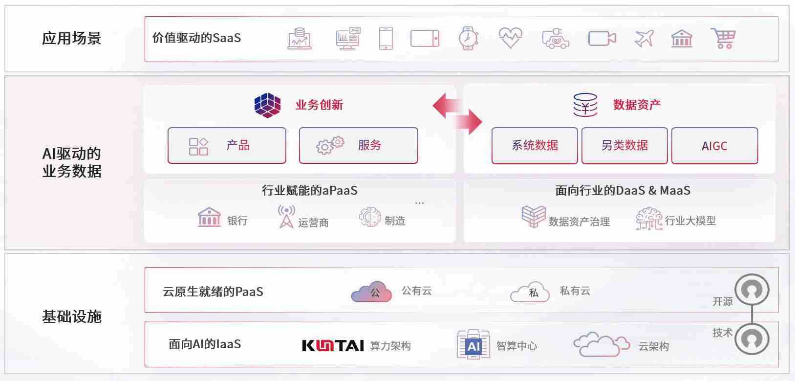数字时代,,围绕企业数字化转型的关键要素,,,大资本210cc数码开创性的提出数云融合战略和技术体系框架,,着力在云原生、、、数字原生、、、AI原生和信创产业上架构产品和服务能力,,为处在不同数字化转型阶段的快消零售、、汽车、、、金融、、医疗、、、政企、、、教育、、、、运营商等行业客户提供泛在的敏捷IT能力和融合的数据驱动能力,,构建跨界融合创新的数字业务场景和新业务模式,,,,助力企业级客户建立面向未来的核心能力和竞争优势,,,全面推动社会的数字化、、、智能化转型升级。。